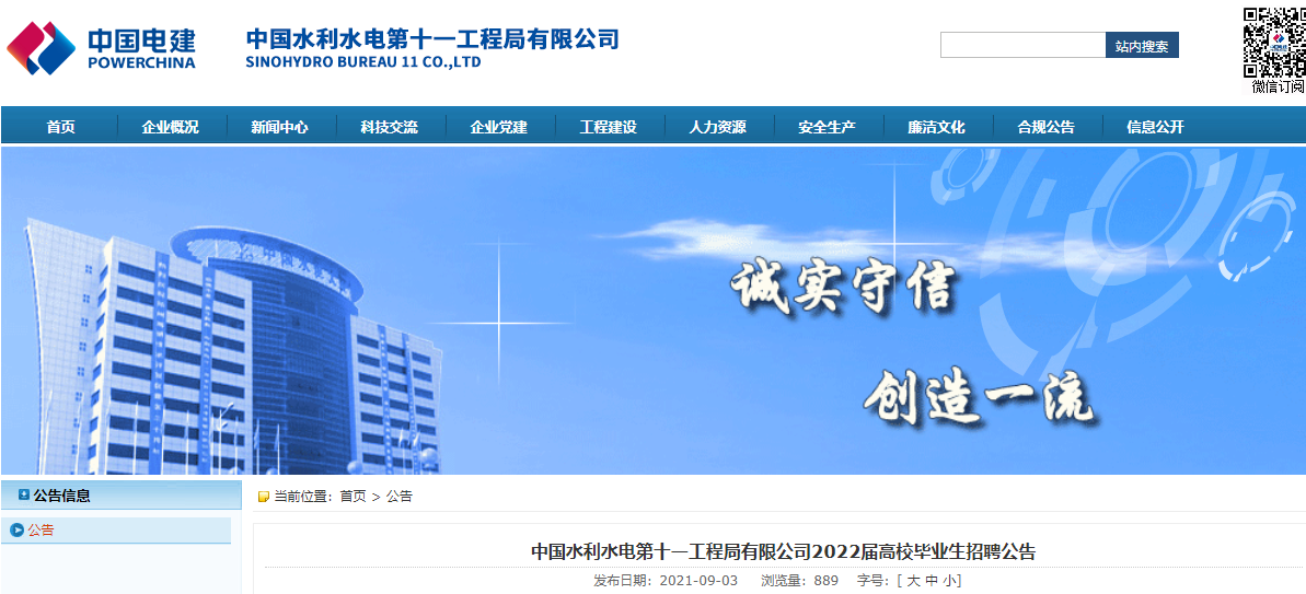 近日,中國水利水電第十一工程局發布2022屆高校畢業生招聘公告,待遇優渥、福利齊全,考取證書者還能獲得最高10萬元的一次性獎勵,速看!