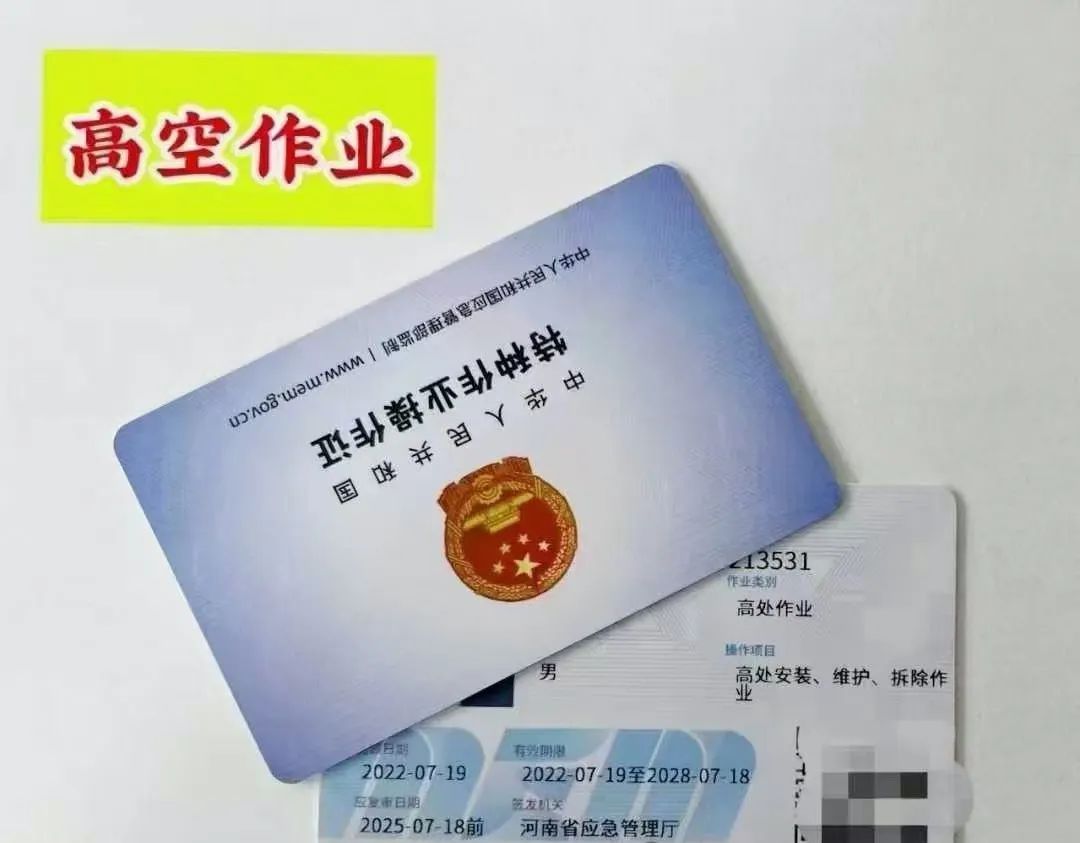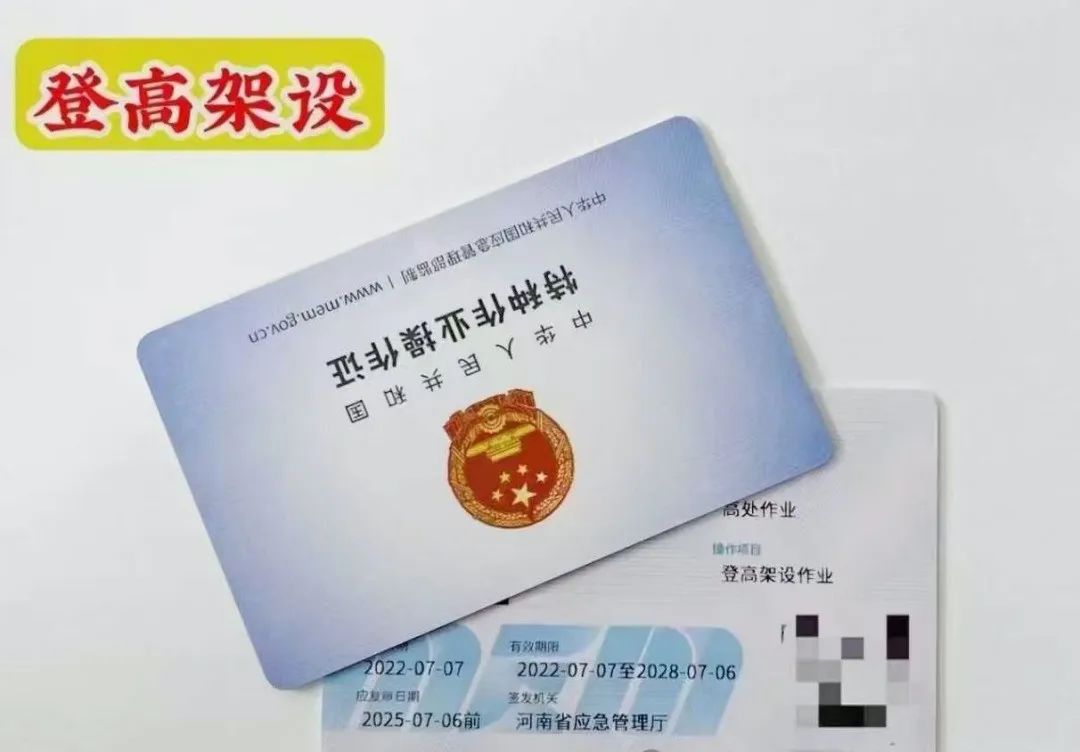 指在高處從事腳手架、跨越架架設或拆除的作業。登高架設作業證是國家勞動部門為保障安全而硬性規定從事此項工作必須認知電業常識與操作規程,經考試合格才發證件,從事登高架設工作必須持有登高架設作業特種作業操作證。證書適用于利用專用設備進行建筑物內外裝飾、清潔、裝修,電力、電信等線路架設,高處管道架設,小型空調高處安裝、維修,各種設備設施與戶外廣告設施的安裝、檢修、維護以及在高處從事建筑物、設備設施拆除作業。
