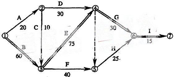 影響工期的關(guān)鍵工作是:生產(chǎn)線進(jìn)場(1 分),生產(chǎn)線組裝固定(1分),生產(chǎn)線試車調(diào)整(1分),聯(lián)動調(diào)試、試運行、驗收(1 分),總工期為180 天(1 分)。(關(guān)鍵線路為1-3-5-6-7)