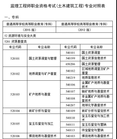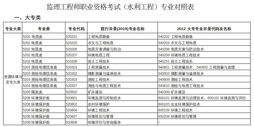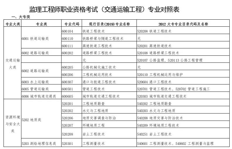 2020年監理工程師考試三大報考專業(土木建筑工程、交通運輸工程、水利工程)對照表公布!