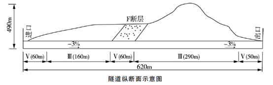 某雙車(chē)道公路隧道。全長(zhǎng)620m,地層巖性為石灰?guī)r,地下水豐富有一條F斷層破裂帶隧道最大埋深490m,縱坡為-3%。其圍巖級(jí)別及長(zhǎng)度見(jiàn)隧道縱段面示意圖3.合同總工期為20個(gè)月為保證施工安全,施工單位結(jié)合項(xiàng)目地質(zhì)和設(shè)備條件,擬在全斷面法、臺(tái)階法、單側(cè)壁導(dǎo)坑法、CD法、CRD法5種工法中選擇組織施工。