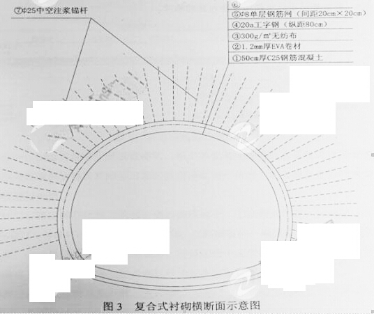 2.根據圖3,寫出結構層⑥的名稱,并寫出初期支護、防水層、二次襯砌分別由哪幾部分組成?(只需寫出相應的編號)