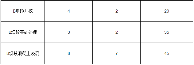 2. 圍堰加高、截流及基坑排水、B壩段基礎處理各壓縮1個月;115萬元。