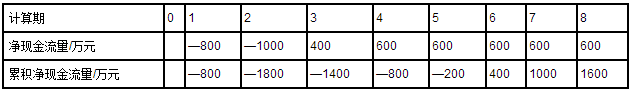 6.某項目財務現金流量表的數據見表1,則該項目的靜態投資回收期為( )年。