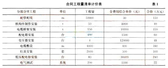 某安裝公司中標(biāo)了某貿(mào)易中心大樓的電氣安裝工程,該工程采用以人工費(fèi)為取費(fèi)基數(shù)的全費(fèi)用綜合單價(jià)計(jì)價(jià)。中標(biāo)工程量清單如表1所示,措施項(xiàng)目總費(fèi)用為210萬元。