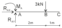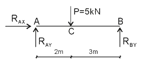 ——ΣMA=0 => 5×2=RBY×5=> RBY=2kN,RAY=3kN
