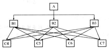 13、下圖所示的組織結(jié)構(gòu)中,A、B1、B2、B3、C5、C6和C7都是工作部門,對其表述正確的有( )。P23
