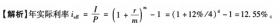 8.【2014年真題】名義利率12%,每季復(fù)利計(jì)息一次,則年實(shí)際利率為( )。