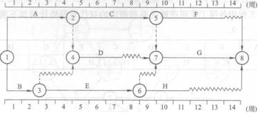 46、 某工程雙代號時標網絡計劃如下圖所示,則該進度計劃的關鍵線路是( )。