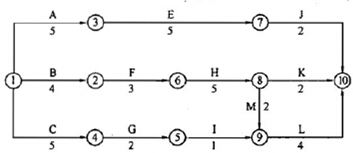 某工程項目合同工期為 18 個月,施工合同簽訂以后,施工單位編制了一份初始進度計劃網絡圖(單位:月)如下: