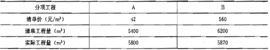 分項工程 A、B 施工完成后,其相關參數統計如下表,造價工程師對此兩項進行價款計算。