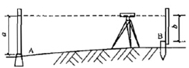 6.某工程高程測(cè)量,已知 A 點(diǎn)高程為 H。,水準(zhǔn)儀安置于 A、B 兩點(diǎn)之間,后視讀數(shù)為 a,前視讀數(shù)為 b,則 B 點(diǎn)高程 Hb 為( )。