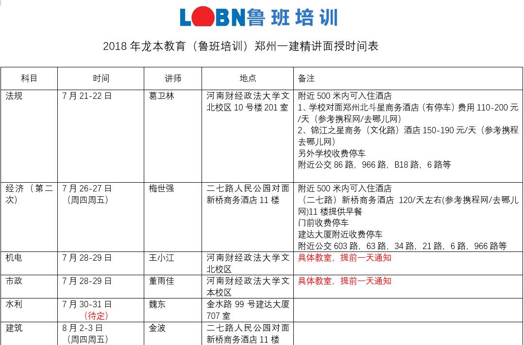 魯班培訓(xùn)2018年一級建造師面授課程表