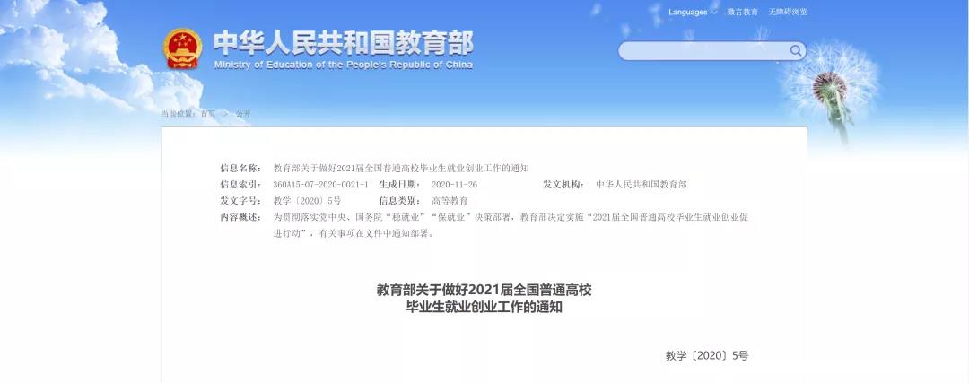 近日,教育部、人力資源和社會保障部在北京召開2021屆全國普通高校畢業生就業創業工作網絡視頻會議。會議強調,各地教育部門各高校要實施好2021屆全國普通高校畢業生就業創業促進行動。支持畢業生到戰略性新興產業、現代服務業等領域就業創業,動員鼓勵畢業生投身基層、參軍入伍,擴大科研助理崗位招募和第二學士學位招生規模。搭建就業創業供需對接平臺,加強就業信息高效服務。實施重點群體畢業生就業創業能力提升行動,繼續實施全國高校與湖北高校“一幫一”行動,做好畢業生權益維護。