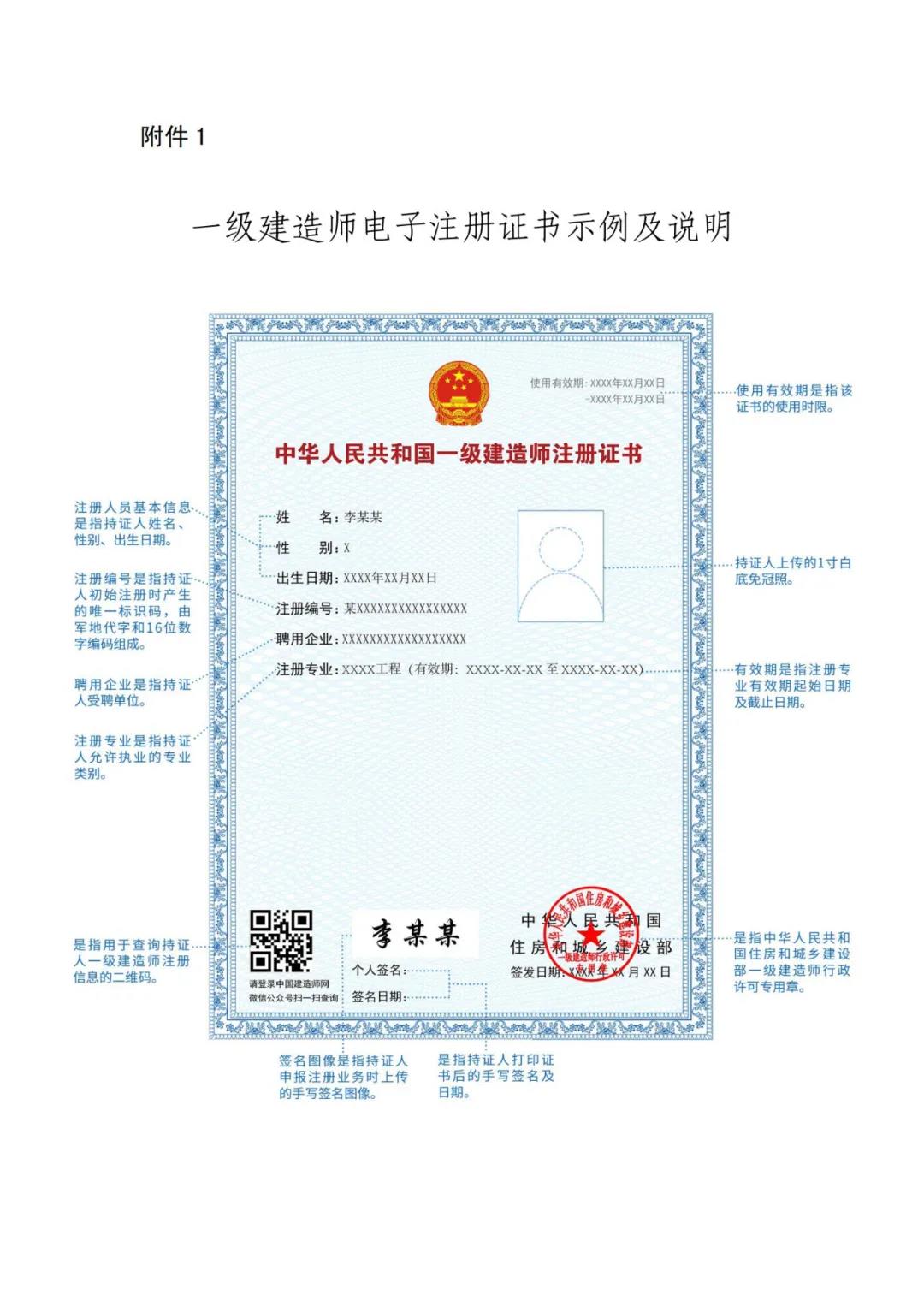 1.自2021年8月1日起,在河北等15個省(區、市)啟用一級建造師電子證書(具體示例及說明見附件1),電子證書式樣按照《全國一體化在線政務服務平臺電子證照一級建造師注冊證書》標準執行(具體式樣見附件2)。