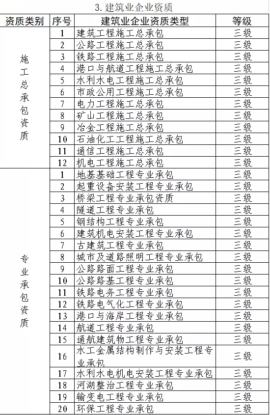 一、按照國發〔2021〕7號文件要求,自2021年7月1日起,各級住房和城鄉建設主管部門停止受理本文附件所列建設工程企業資質的首次、延續、增項和重新核定的申請,重新核定事項含《住房城鄉建設部關于建設工程企業發生重組、合并、分立等情況資質核定有關問題的通知》(建市〔2014〕79號)規定的核定事項。2021年7月1日前已受理的,按照原資質標準進行審批。