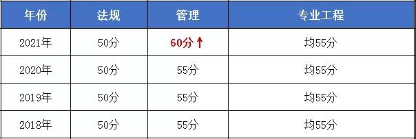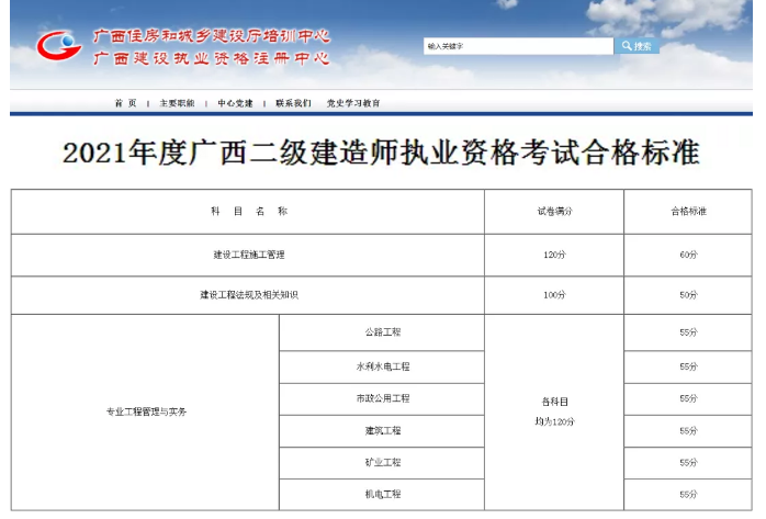 根據(jù)公告得知,2021年廣西二級建造師分?jǐn)?shù)線:建設(shè)工程施工管理60分,建設(shè)工程法規(guī)及相關(guān)知識50分,專業(yè)工程管理與實務(wù)均55分。