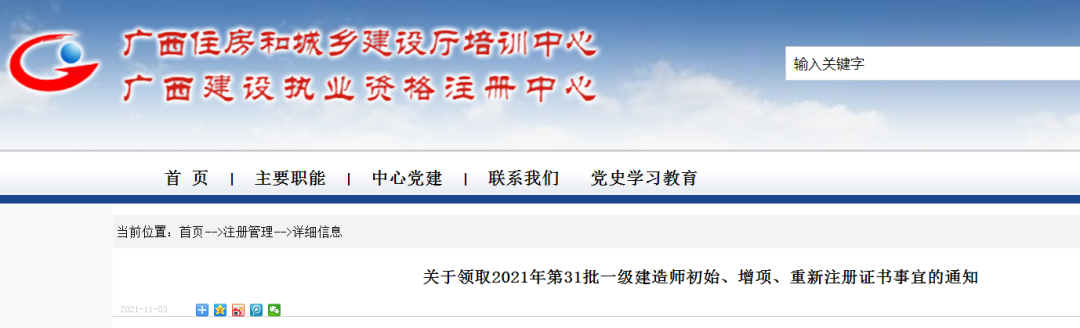 近日,廣西住建廳培訓中心發布關于關于領取2021年第31批一級建造師初始、增項、重新注冊證書事宜的通知,部分一級建造師注冊材料已通過審核,可領取證書。