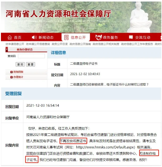 再加上近期多地二建都在領(lǐng)證中,著急的考生便去官網(wǎng)進(jìn)行咨詢,并得到了回復(fù)。