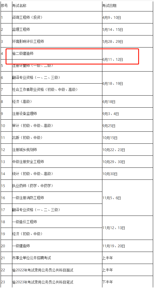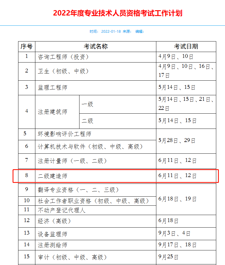 兩地2022年二級(jí)建造師考試時(shí)間公布