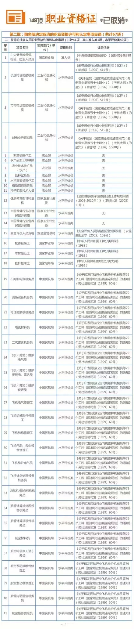 李克強(qiáng)總理在今年7月15日主持召開國務(wù)院常務(wù)會議。會議決定,在去年以來已取消149項職業(yè)資格的基礎(chǔ)上,再取消網(wǎng)絡(luò)廣告經(jīng)紀(jì)人、注冊電子貿(mào)易師、全國外貿(mào)業(yè)務(wù)員、港口裝卸工等62項職業(yè)資格。還將繼續(xù)集中取消職業(yè)資格許可和認(rèn)定事項。備考前要查清楚!