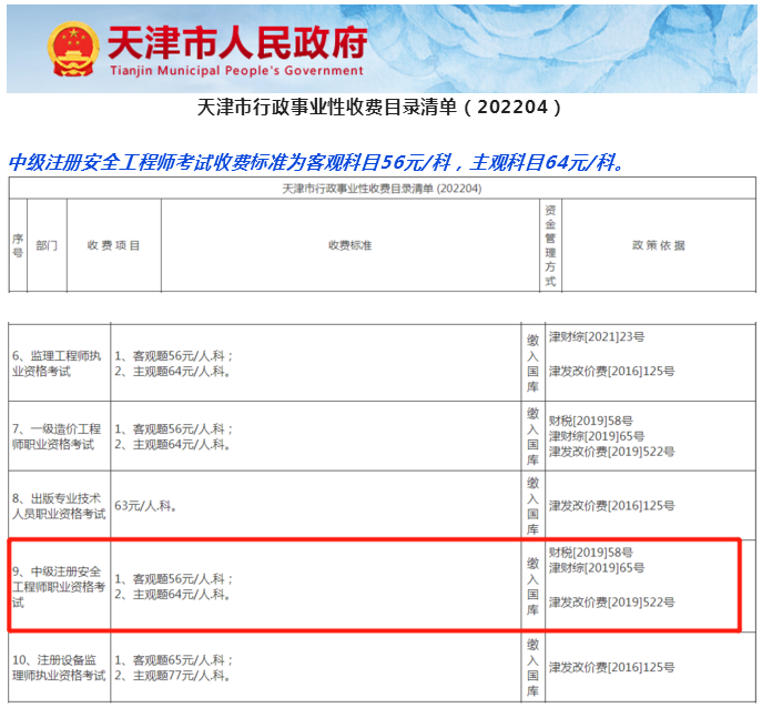 繼山西、海南、重慶三地后,近日,天津、山東羅莊兩地2022年中級(jí)安全工程師等考試收費(fèi)清單也已發(fā)布!
