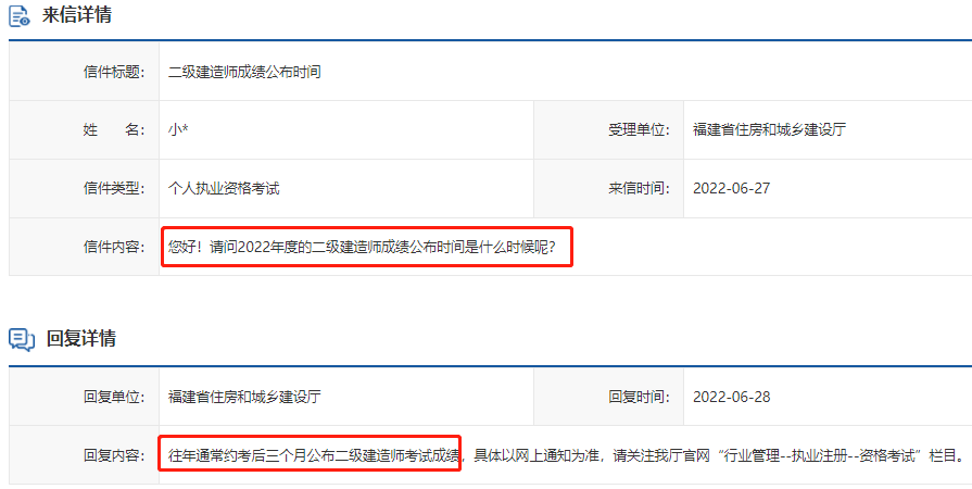 近日,又有2省針對2022二建考試成績公布時間作出了回復,具體如下: