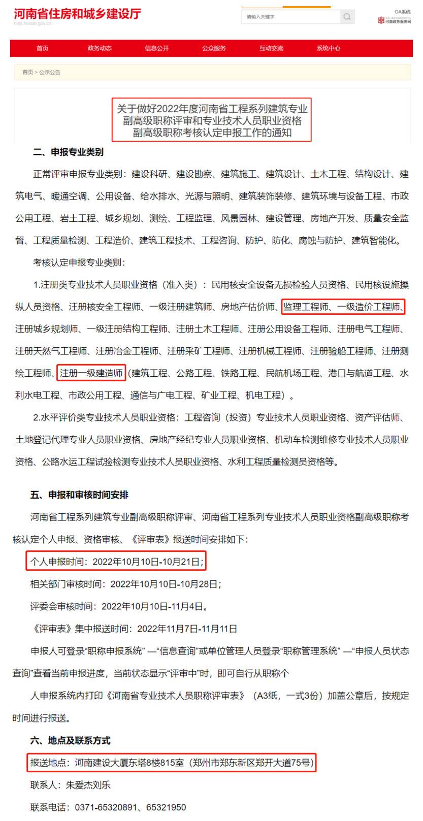 河南的小伙伴注意,2022年度工程系列建筑專業(yè)副高級職稱評審、專業(yè)技術(shù)人員職業(yè)資格副高級職稱考核認定申報工作已經(jīng)開始。