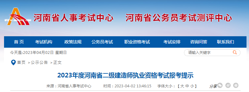 報考條件按照《河南省二級建造師執業資格考試實施辦法》(豫人職〔2005〕22號)執行,考生報考前請認真閱讀相關政策規定,謹慎報考,如有疑問可致電資格審核部門(見附件)詳詢。