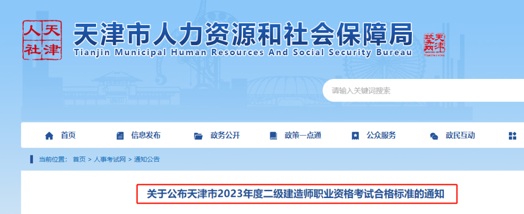 根據天津市人力資源和社會保障局有關通知要求,我市2023年度二級建造師職業資格考試各科目合格標準均為試卷滿分的60%。具體各科目合格標準如下:
