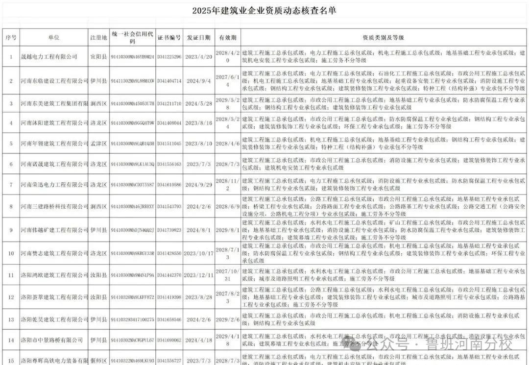 按照《河南省住房和城鄉(xiāng)建設(shè)廳關(guān)于對部分建筑業(yè)企業(yè)開展資質(zhì)動態(tài)核查的通知》(豫建市〔2025〕135號)要求,對篩查發(fā)現(xiàn)的2023年和2024年連續(xù)兩年無產(chǎn)值且多項資質(zhì)被標(biāo)注異常的建筑業(yè)企業(yè)開展資質(zhì)動態(tài)核查,現(xiàn)將有關(guān)要求通知如下:
