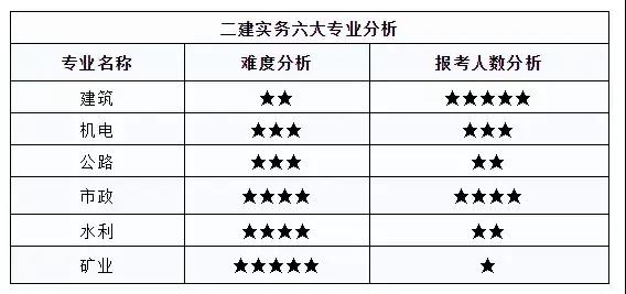 為了給2021年準(zhǔn)備二建的朋友提供專業(yè)選取參考,我們也給大家整理一份熱度+專業(yè)難度分析表: