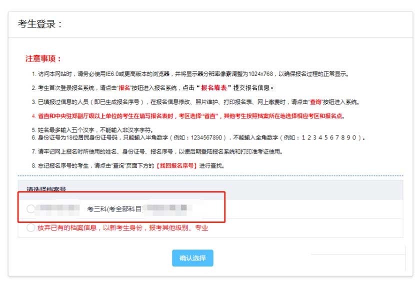 新考生(第一次參加考試的考生):不會出現檔案號 會直接開始下一步老考生(之前參加過考試的考生):會現檔案號 選擇檔案號進行報名