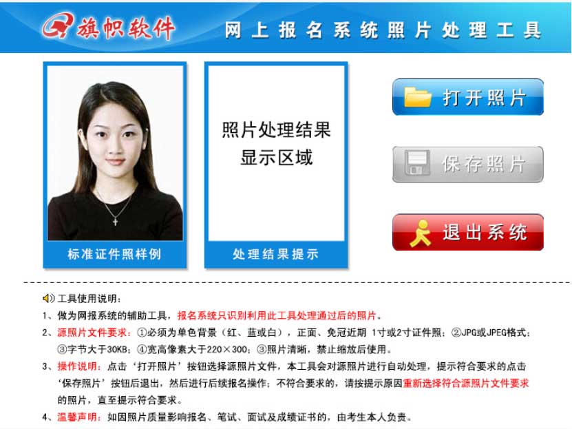 照片要通過照片處理器處理過才行,處理器程序可以在上傳頁面下側下載,照片要求如下: