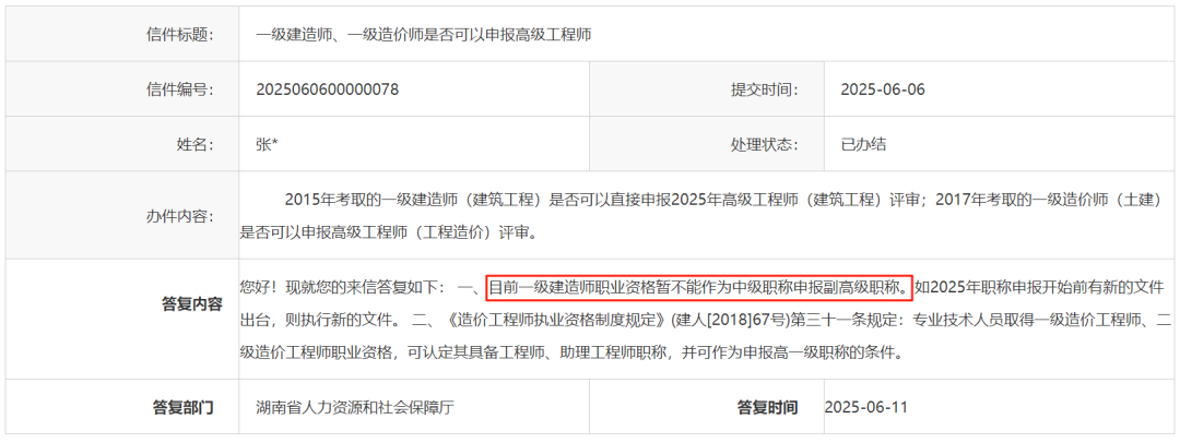 最近有很多同學都在討論一級建造師能不能申報副高級職稱。這個問題不能一概而論,因為各地區的政策不同。最近湖南省人社廳明確回復:目前一級建造師職業資格暫不能作為中級職稱申報副高級職稱。一起來看~