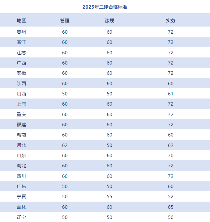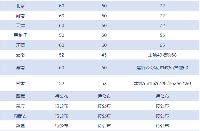 同時(shí),以上大部分地區(qū)的二建合格線也已公布,另外西藏、青海、內(nèi)蒙古、新疆的二建合格標(biāo)準(zhǔn)需待有關(guān)部門確定后另行公布。