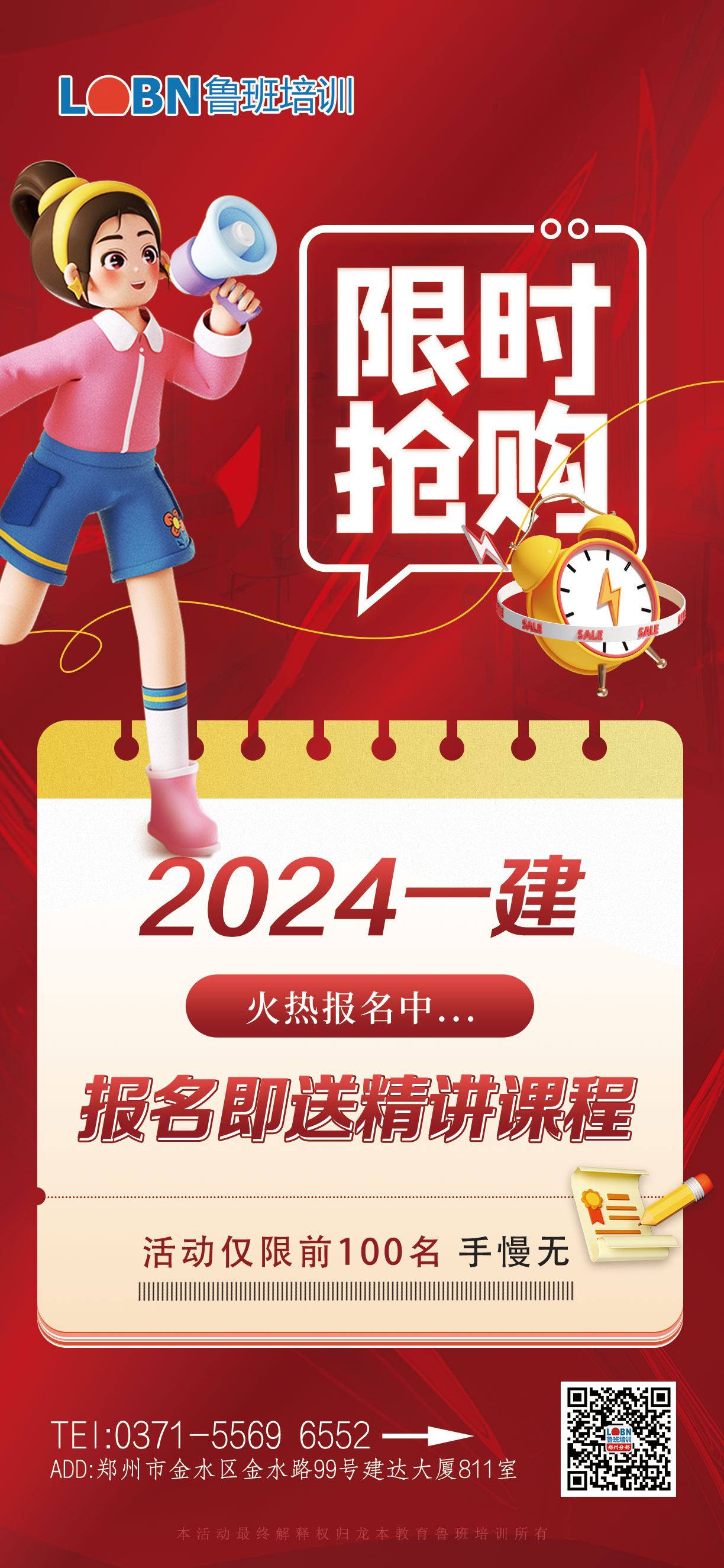 即日起,凡您在魯班培訓報名一級建造師的親們,魯班培訓送您2024最新版一建精講課程(單科),管理、法規、經濟、實務課程任您選!