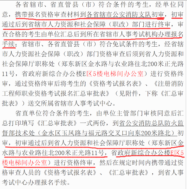 2015年河南一級消防工程師考試報名安排