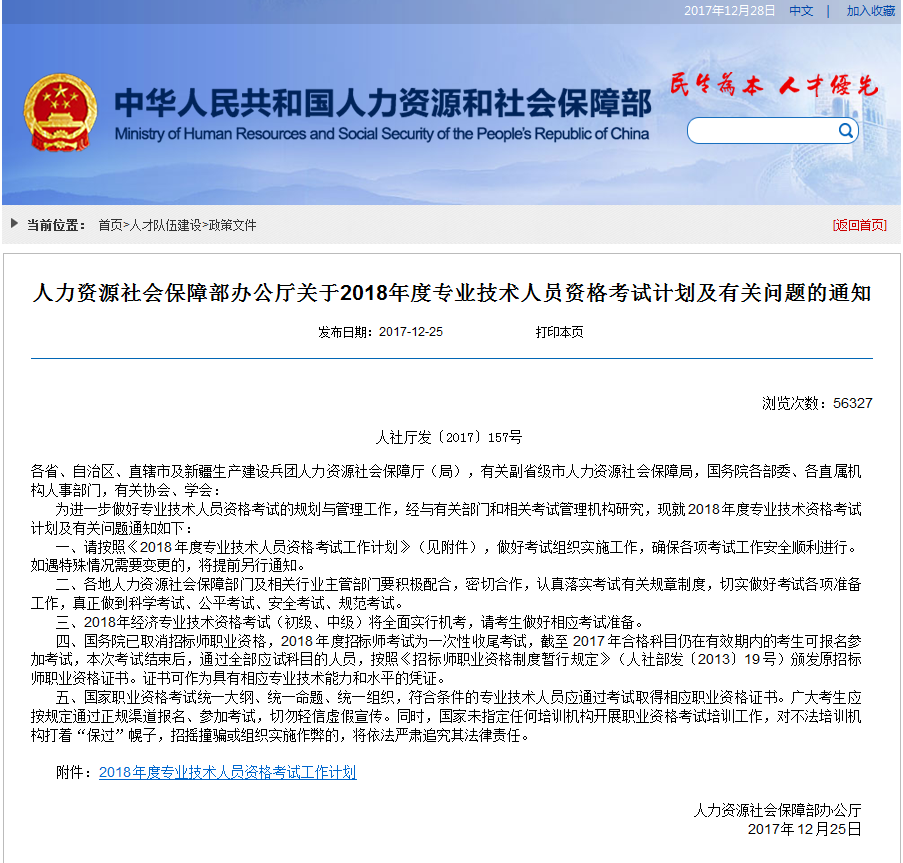 2018年度專業(yè)技術(shù)人員資格考試工作計劃