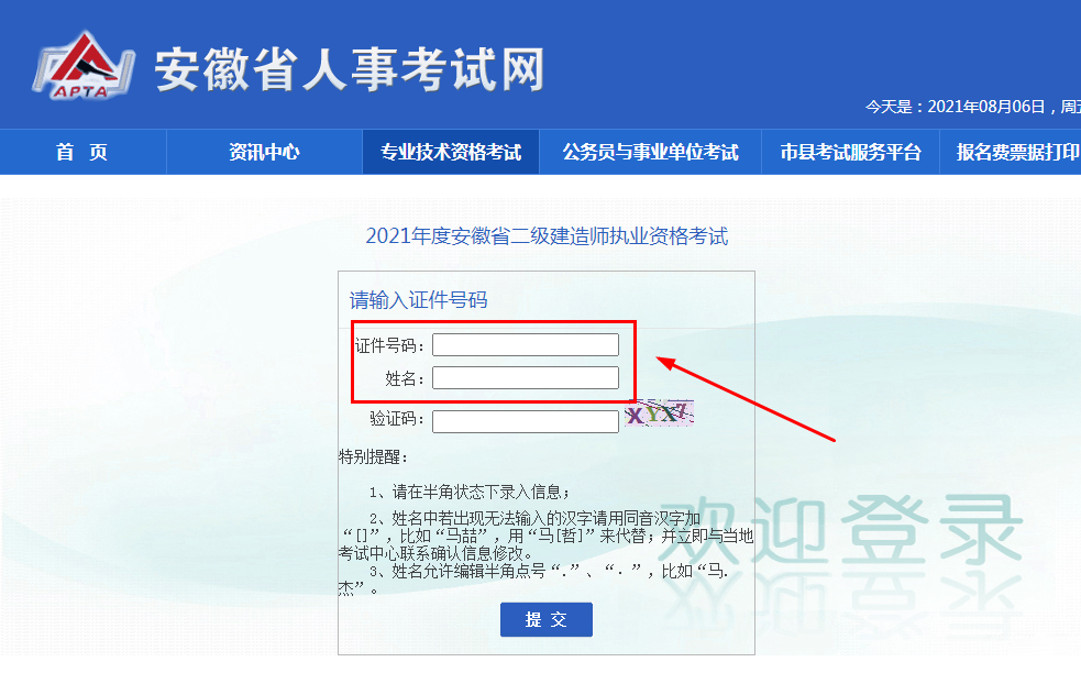 2、二級建造師查詢方式:輸入身份證號+驗證碼即可
