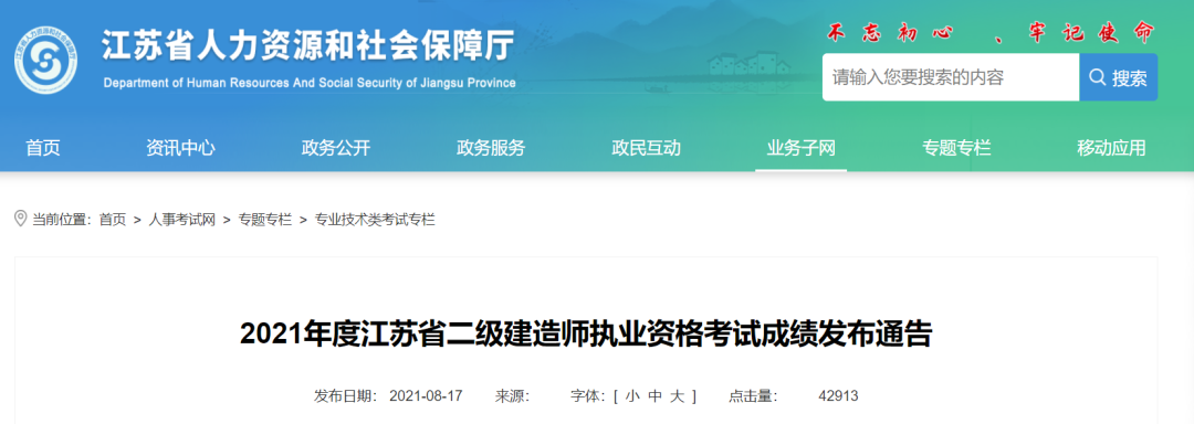 江蘇省人社廳今日發(fā)布公告,2021年江蘇二級(jí)建造師考試成績(jī)發(fā)布時(shí)間定于8月18日上午9時(shí)發(fā)布!以下是公告詳情。