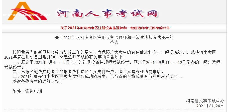 一、原定于2021年9月4——5日舉辦的注冊(cè)設(shè)備監(jiān)理師考試???。原定于2021年9月11——12日舉辦的一級(jí)建造師考試???/span>。