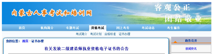 全部科目考試成績(jī)合格的應(yīng)試人員,可登錄“內(nèi)蒙古政務(wù)服務(wù)網(wǎng)(zwfw.nmg.gov.cn),登錄系統(tǒng)后,在用戶中心-我的證照里查看和下載證書,考生也可登錄蒙速辦APP,在我的卡包-個(gè)人證照中查看證書信息。