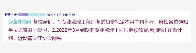接相關(guān)部門通知,2021年專業(yè)監(jiān)理工程師將于11月中旬照常舉行考試,請報考專業(yè)監(jiān)理工程師的考生抓緊時間復習備考.