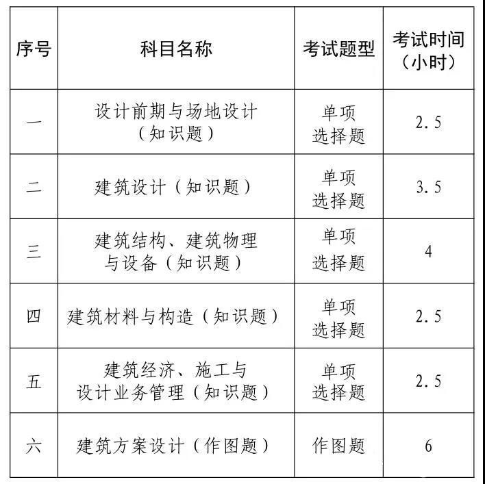 -舊大綱中的《建筑設計》(知識題)、《建筑材料與構造》(知識題)、《建筑經濟、施工與設計業務管理》(知識題)、《建筑方案設計》(作圖題)4 個科目保持不變;