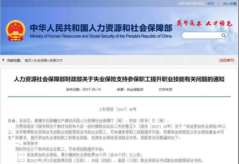 早在2017年,人社部發(fā)布了《關于失業(yè)保險支持參保職工提升職業(yè)技能有關問題的通知》。