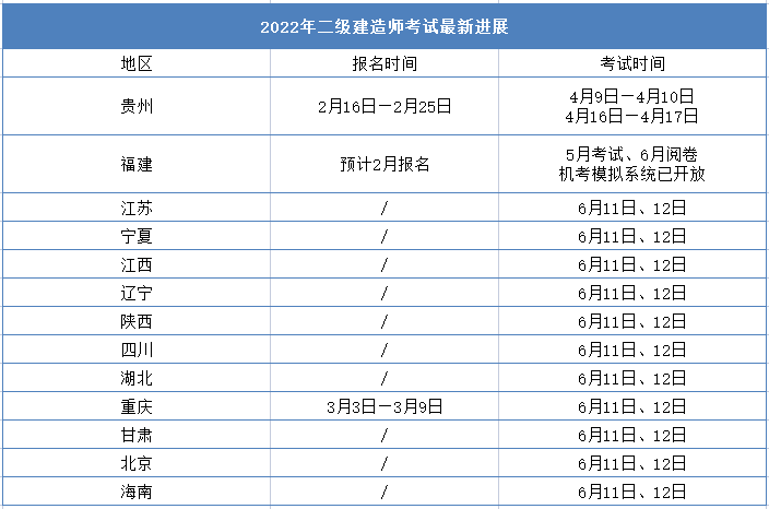 目前,已經有13地官宣二建考試最新進展,12地明確考試時間,2地確定報名時間,匯總如下: