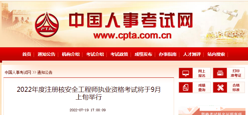 關于2022年度注冊核安全工程師執業資格全國統一考試日期調整有關事項的通告