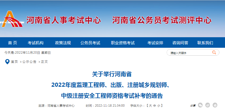 18日晚,河南省人事考試網發布了《關于舉行河南省2022年度監理工程師、出版、注冊城鄉規劃師、中級注冊安全工程師資格考試補考的通告》,監理工程師、出版、注冊城鄉規劃師、中級注冊安全工程師將于26日舉行,11曰23日9:00開始打印準考證,請小伙伴相互轉告,不要錯過機會!