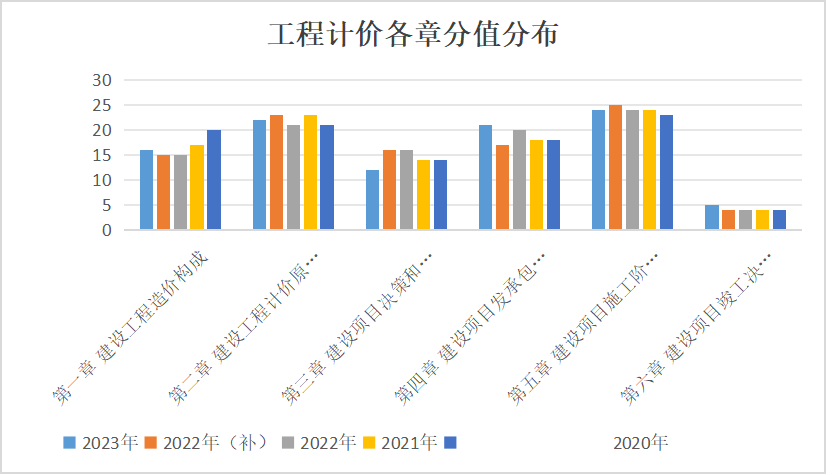 從歷年考試章節分值分布可以看出:工程計價學習的重點是第一、二、四、五章,其中,第二章和第五章尤其重要。另外,第一章第三節、第三章第一、二節也要重點注意,近幾年來都有重點考察到。計算題型較多,15-18個左右,難度中等,尤其是要掌握書上有例題的計算題型;各章節內容有一定的關聯性,學習時思路一定要清晰。